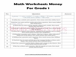Free 7th Grade Math Worksheets - Homeschool Math WebThis is a comprehensive collection of free printable math worksheets for grade 7 and for pre-algebra, organized by topics such as expressions, integers, one-step equations, rational numbers, multi-step equations, inequalities, speed, time & distance, graphing, slope, ratios, proportions, percent, geometry, and pi. They are randomly generated, printable from your … Search Printable 1st Grade Math Word Problem Worksheets WebBrowse Printable 1st Grade Math Word Problem Worksheets. Award winning educational materials designed to help kids succeed. Start for free now! ... Money math word problems are great for addition practice as well as learning the concept of money. 1st grade. Math. Worksheet. Money Word Problems #5.